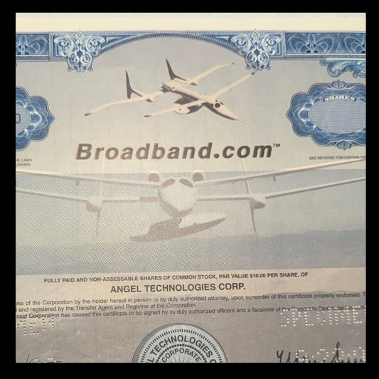 Broadband.com (Angel Technologies) Specimen Stock Certificate from 2000s