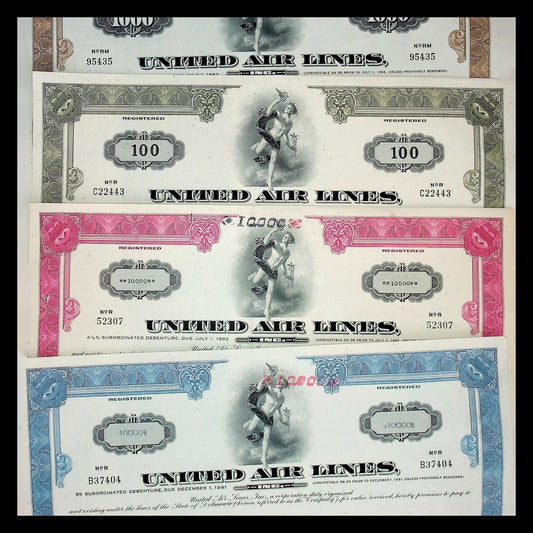 United Airlines Bond Certificate from 1960s/70s (Multiple colors)