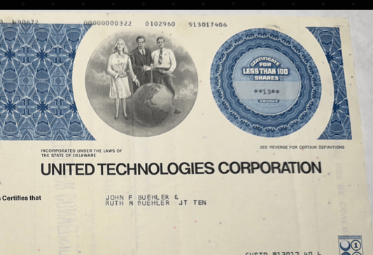United Technologies Corporation (now Raytheon) Stock Certificate