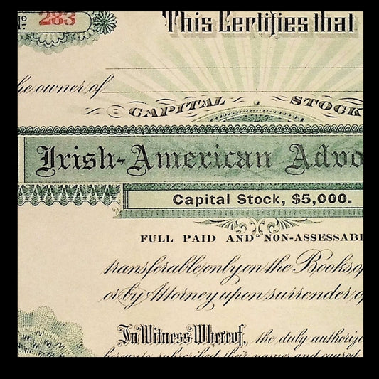 Irish American Advocate Company Unissued Stock Certificate from 1910s