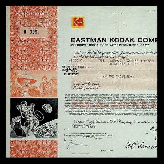Eastman Kodak Company Bond Certificate 1980 (with astronaut filming)