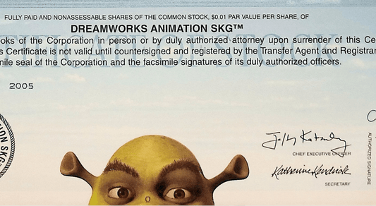 Pixar Stock Certificate with Steve Jobs Signature printed (2005)