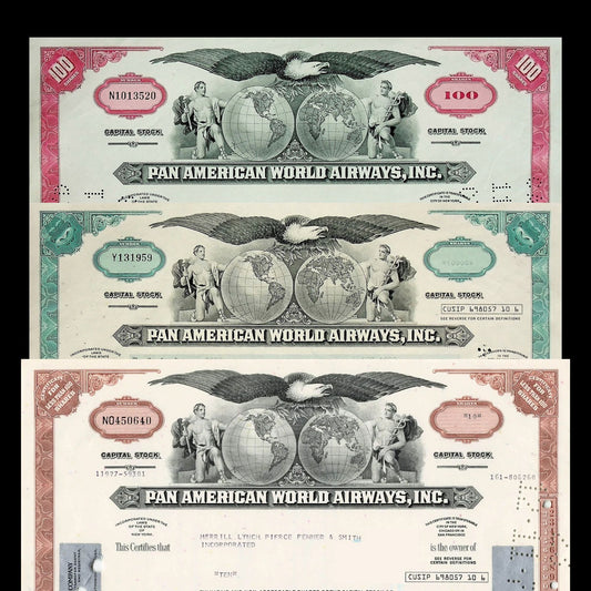 Pan American World Airways Inc Stock Certificate from 1960s to 1970s - 3x Color Options