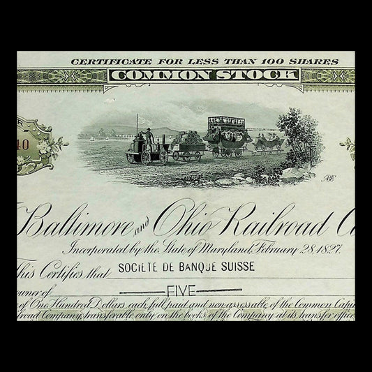 Baltimore & Ohio (B&O) Railroad Company Stock Certificate from 1950s/60s