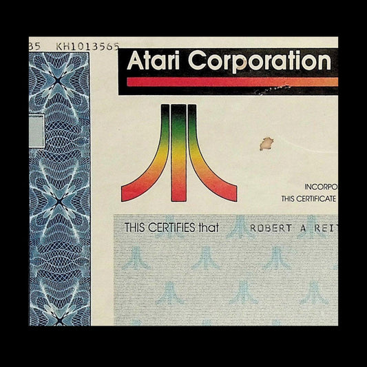 Atari Stock Certificate from 1980s With "Fuji" Logo