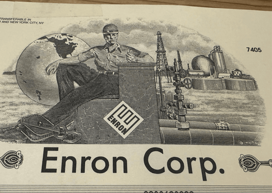 Enron Corp Stock Certificate from 2000s era - Authentic & Original