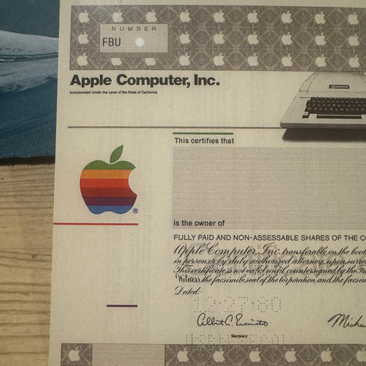 Apple Computer Stock Certificate 1980s 4" x "6 Blank Postcard Replica