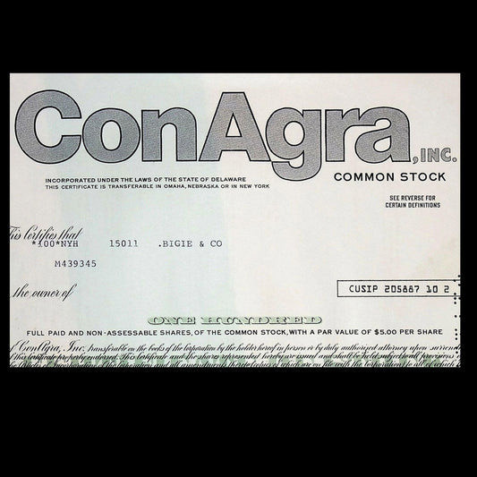 ConAgra Inc Stock Certificate from 1970s to 1980s