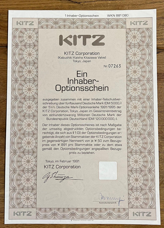 Kitz Corporation Warrant Certificate (In German via Tokyo)