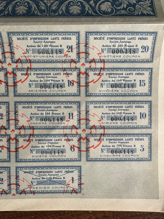 Societe D'Impression Lantz Feres Bond Certificate w/ Coupons (French Textile Co)