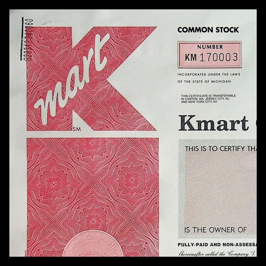 Kmart Corporation Stock Certificate from 2002 w/ Red K logo