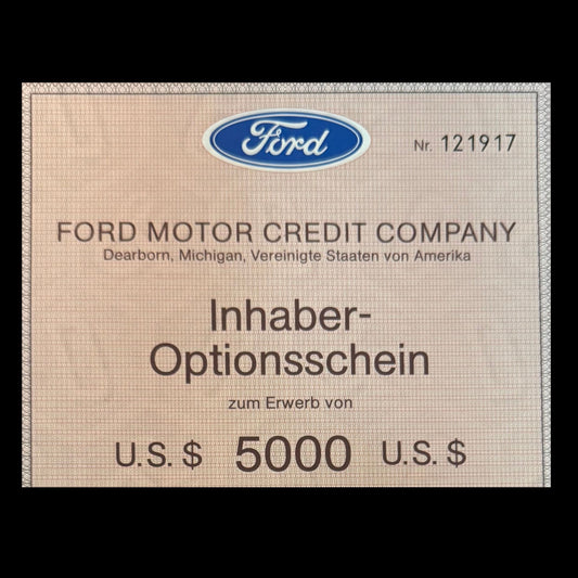 Ford Motor Credit Company Warrant Certificate from Germany 1987