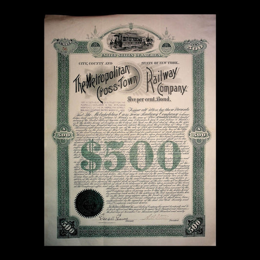 Metropolitan Cross-Town Railway Co (NYC Street Carriages) Bond 1890