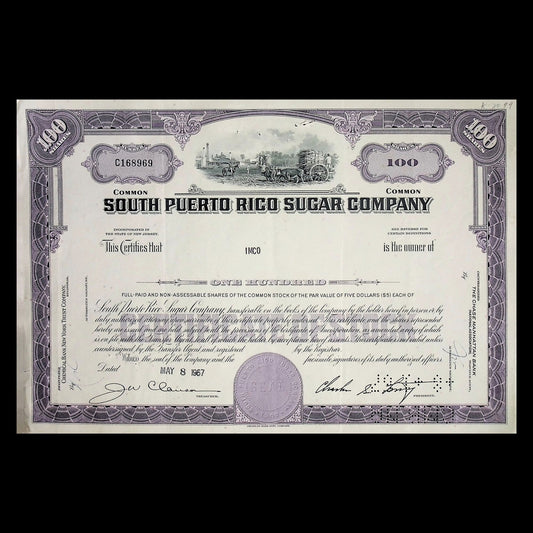 South Puerto Rico Sugar Company Stock Certificate from 1960s