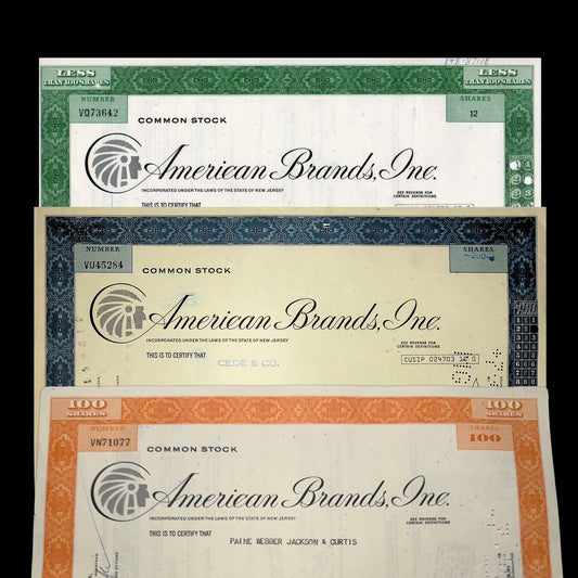 American Brands Inc Stock Certificate (Lucky Strike + Pall Mall cigarettes) from 1970s
