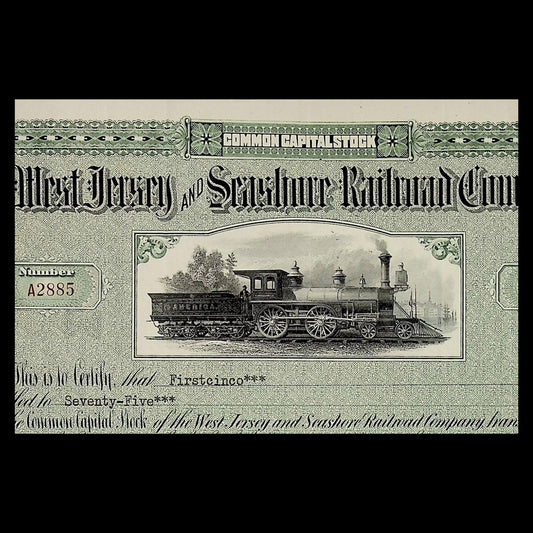 West Jersey and Seashore Railroad Company Stock Certificate from 1950s/60s