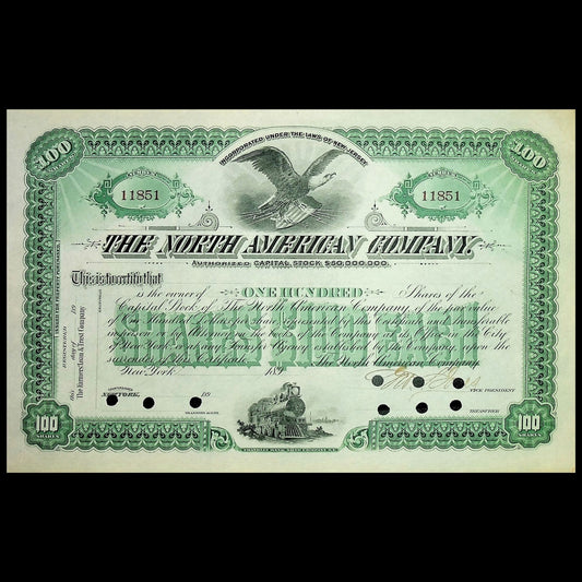 The North American Company Stock Certificate from 1940s (Original Dow Jones Company)