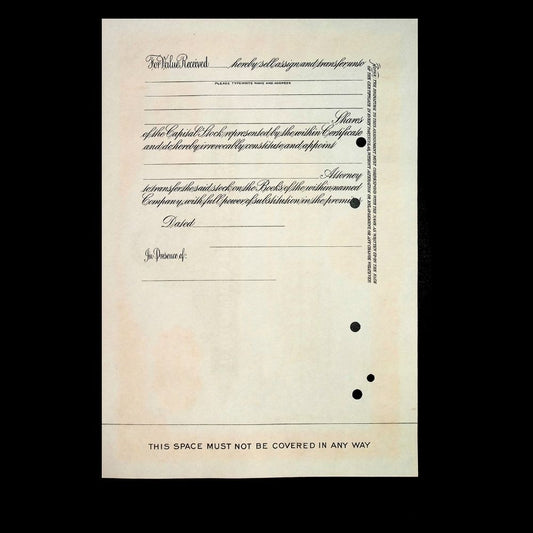 Clinton Trust Company (now Wells Fargo) Unissued Stock Certificate