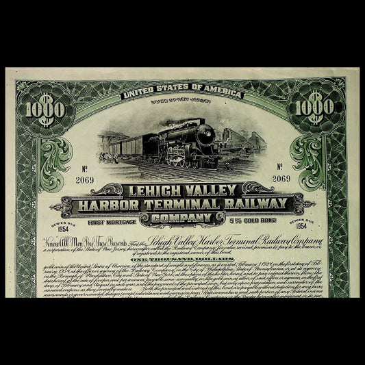 Lehigh Valley Harbor Terminal Railway Company Bond from 1924