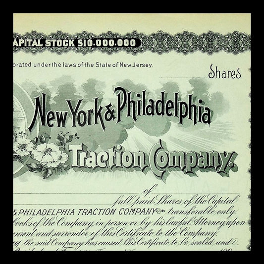 New York & Philadelphia Traction Company 1900s Unissued Stock Certificate