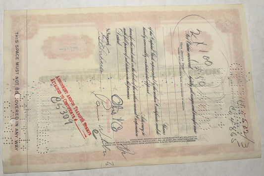 The Cincinnati, New Orleans, and Texas Pacific Railway Company Stock Certificate from 1920s