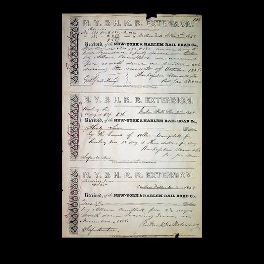 New York & Harlem Railroad Extension Checks - 5x total form 1848
