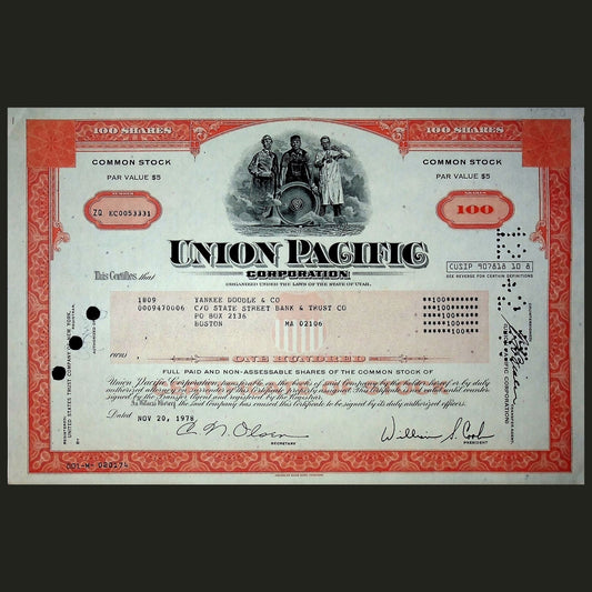Union Pacific Railroad Stock Certificate from 70s 80s