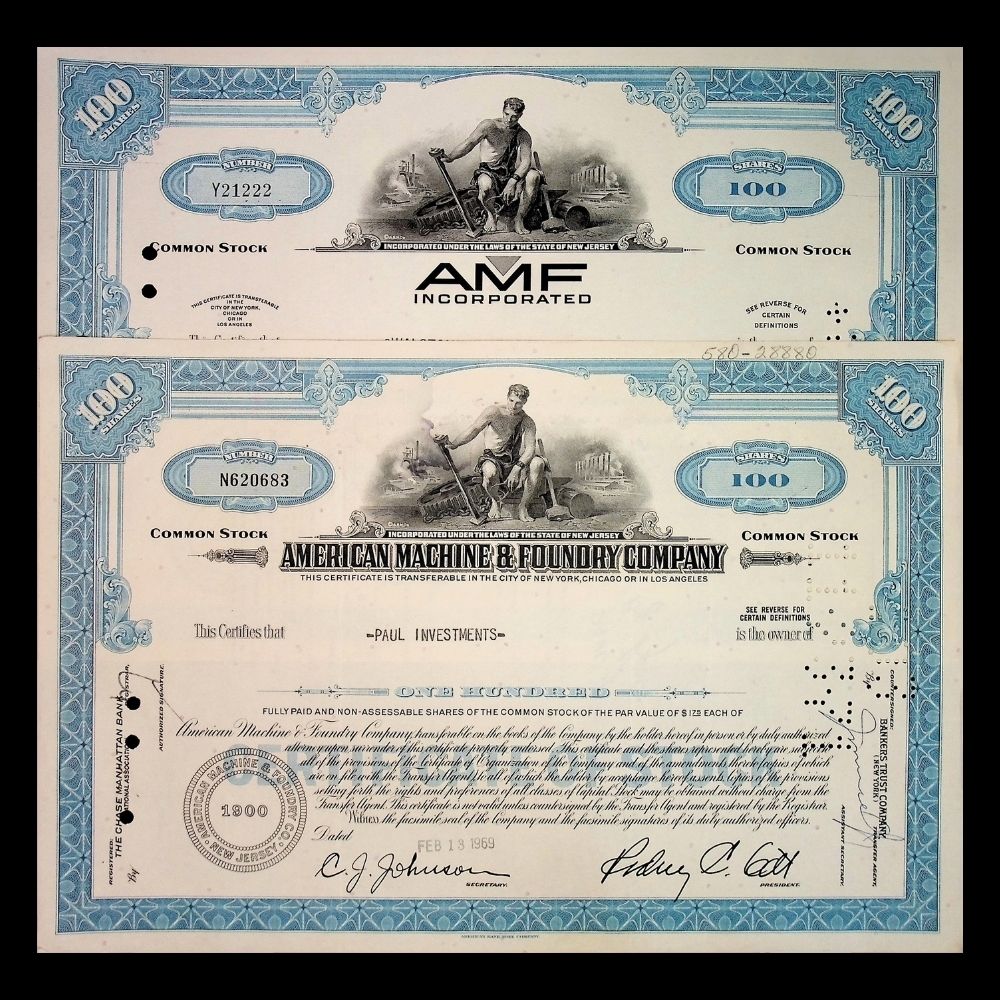 American Machine and Foundry (AMF Bowling) Company Stock Certificate from 1960s–70s