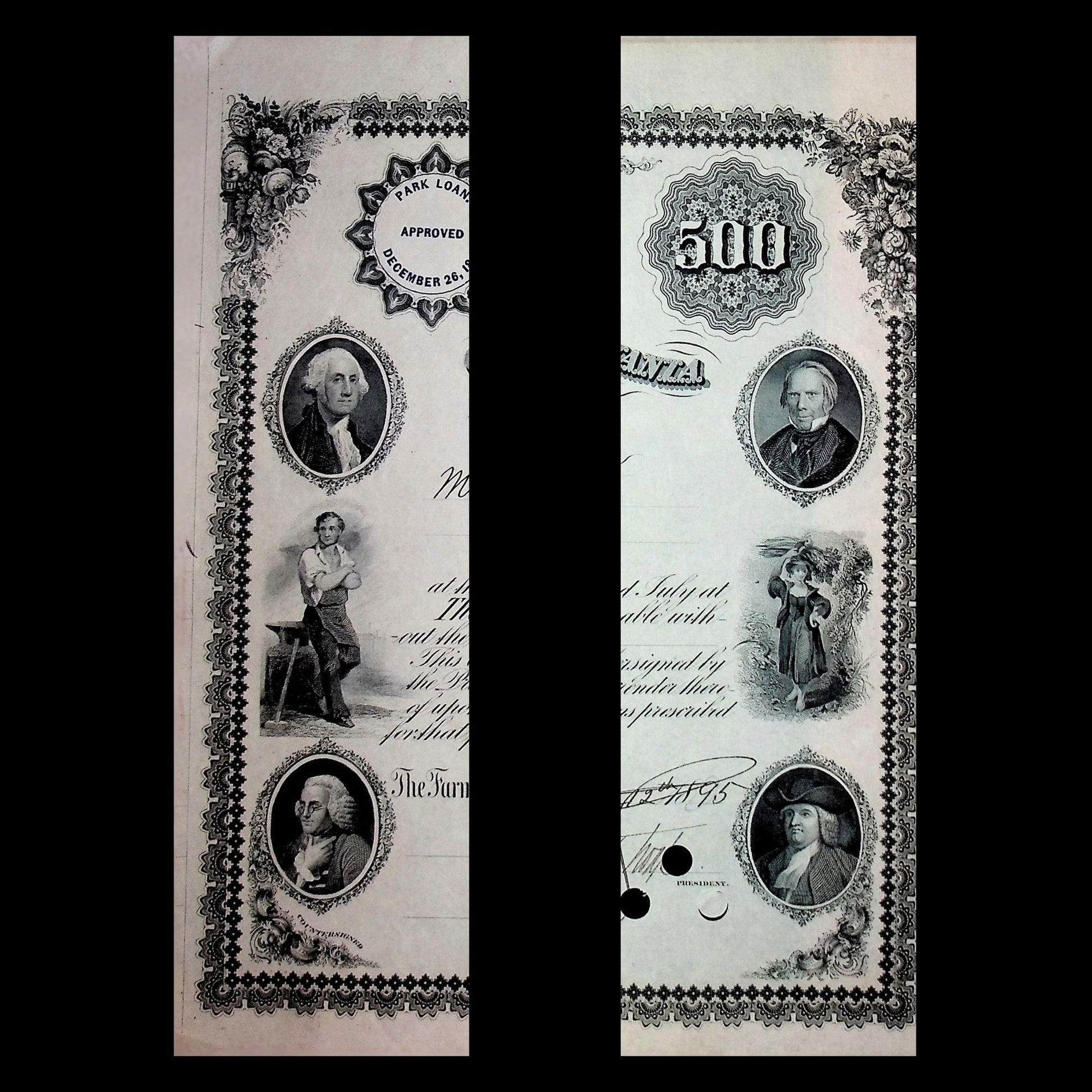 This is a beautiful $500 City of Philadelphia municipal bond certificate, issued in 1899 & cancelled.