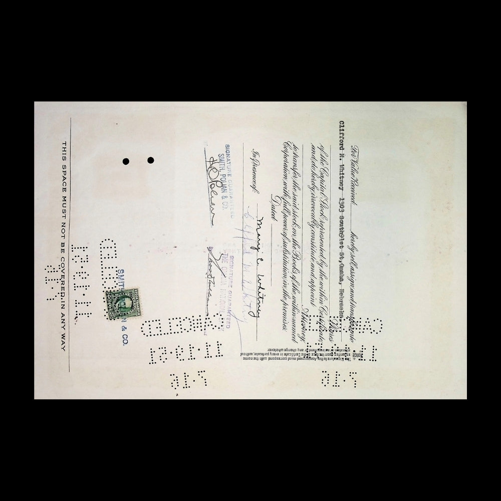 Paper quality: Stock certificates were printed on a variety of certificate paper dating back to the mid 1800s. Most of these vintage collectable certificates have signs of used & wear , cancellation holes, pencil / pen writing, stamps, staples, adhesives, slight rips, missing coupons and other features.