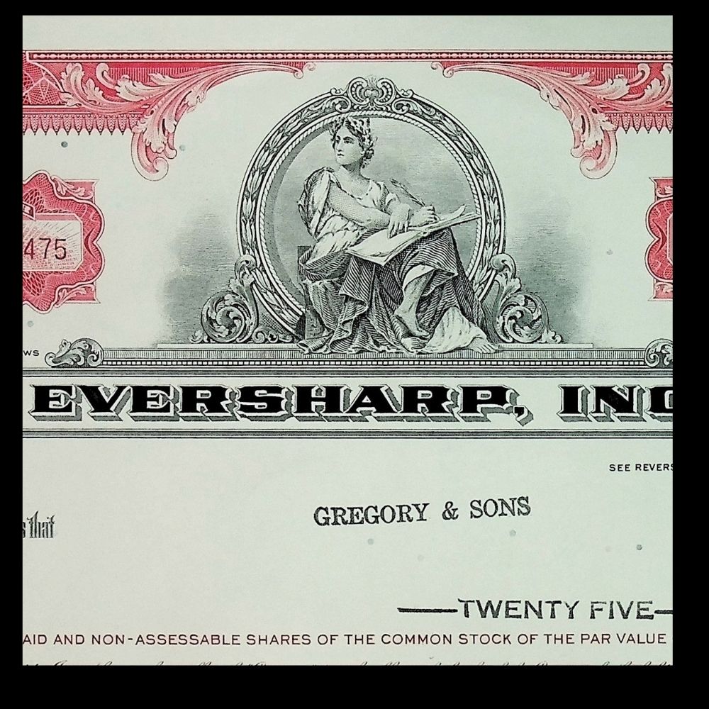Eversharp Inc (Mechanical Pencils) Stock Certificate from 1960s
