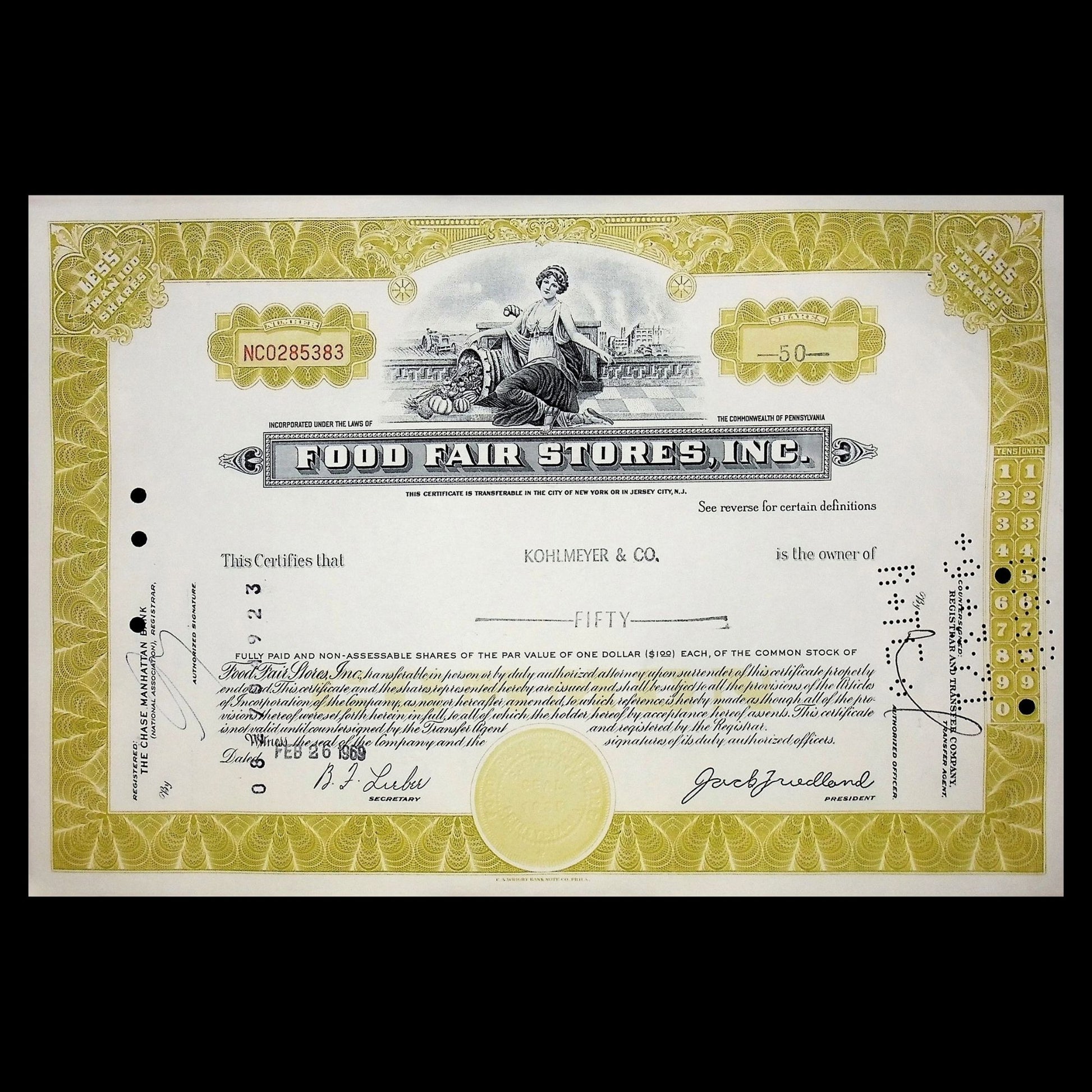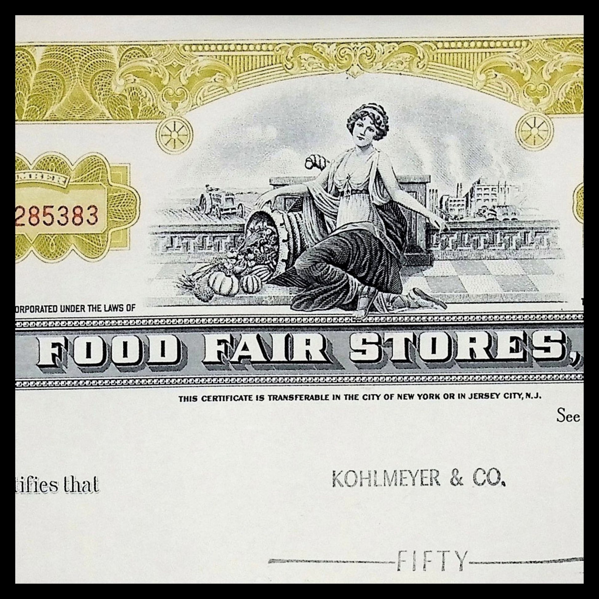 Food Fair Stores Stock Certificate from 1960s