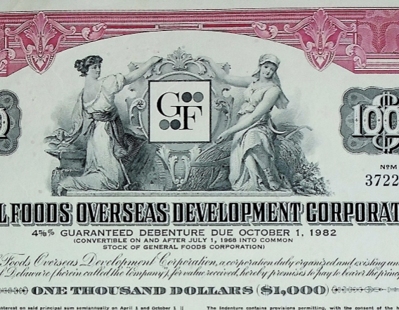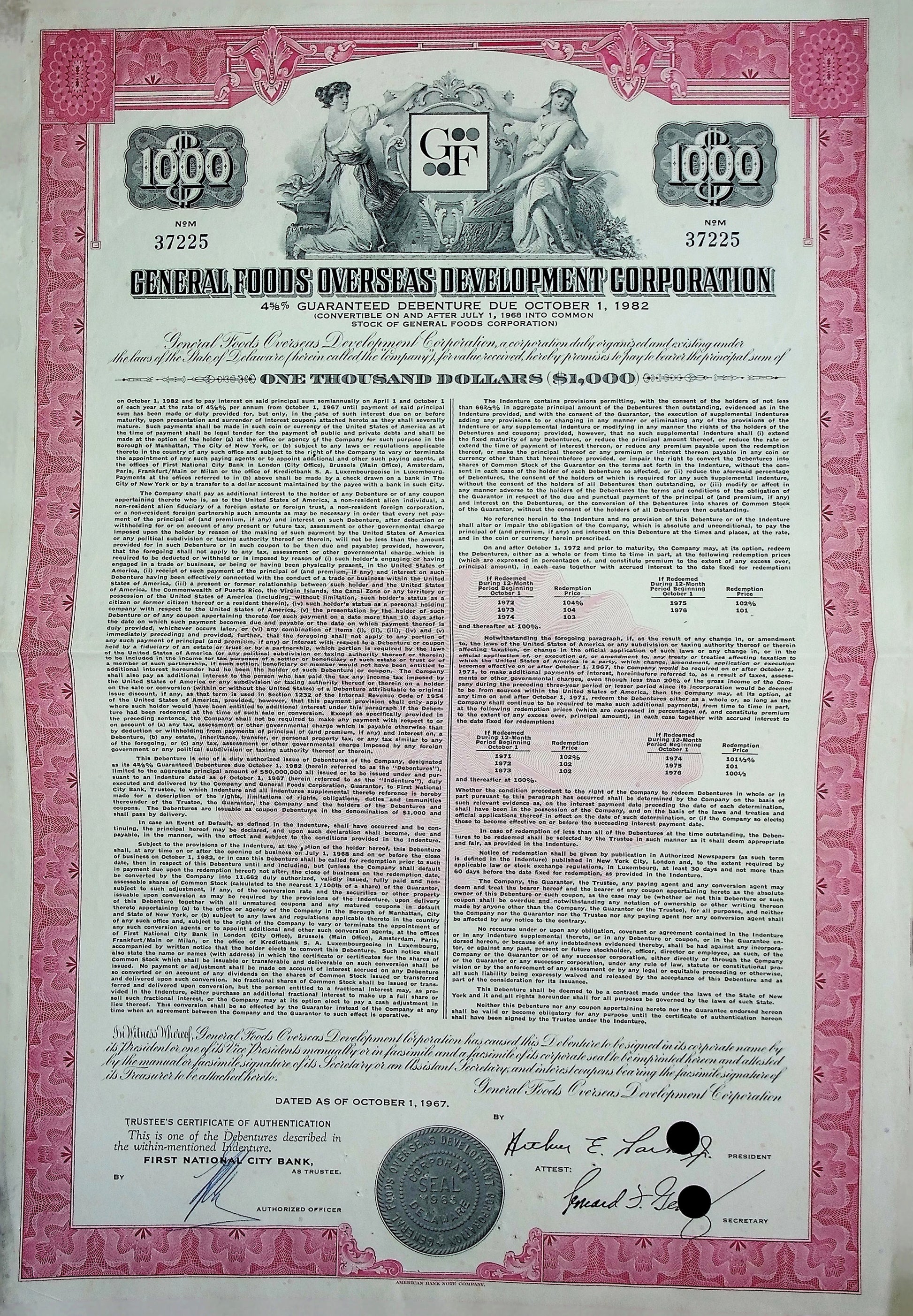 General Foods (now Kraft) Overseas Development Corporation Bond Certificate from 1967