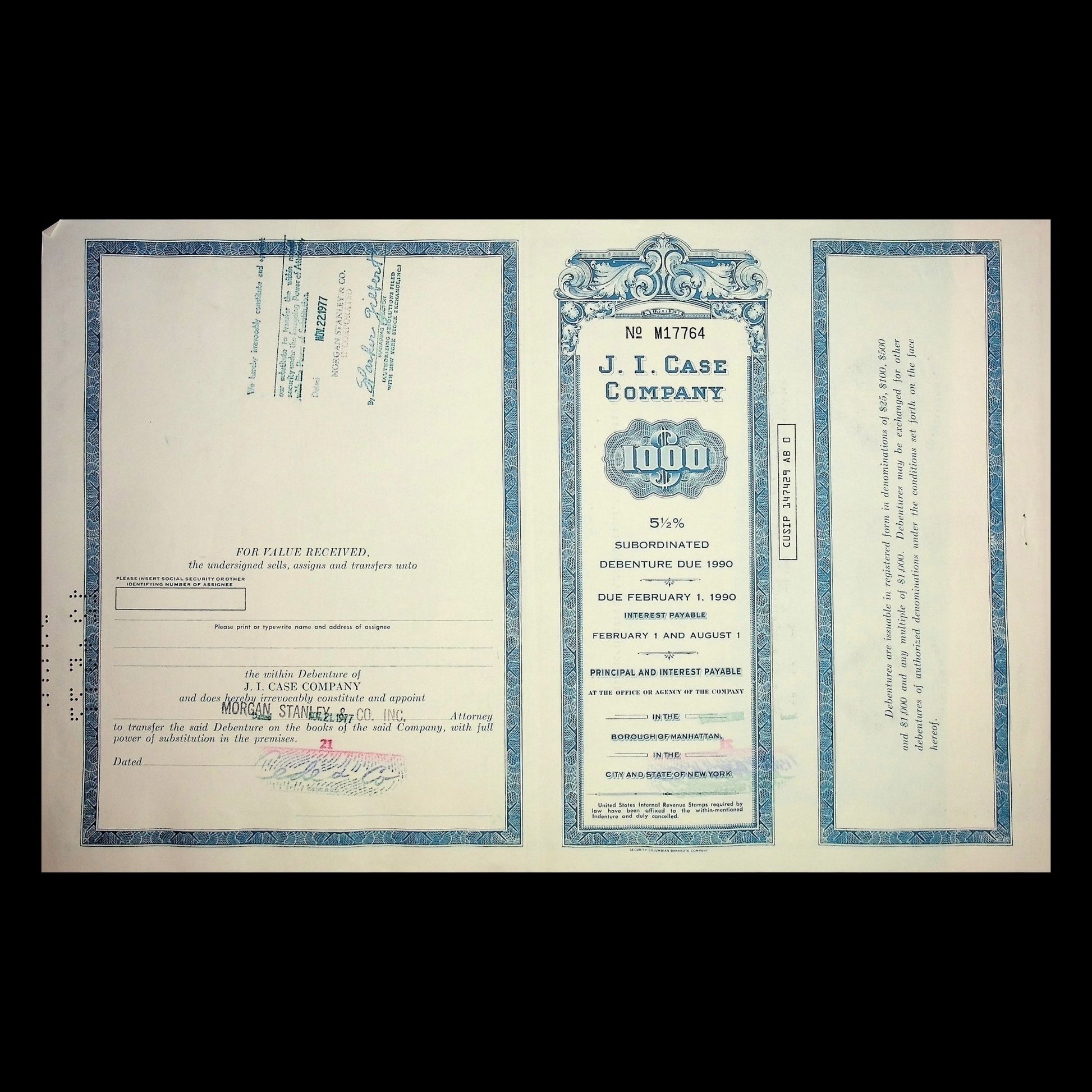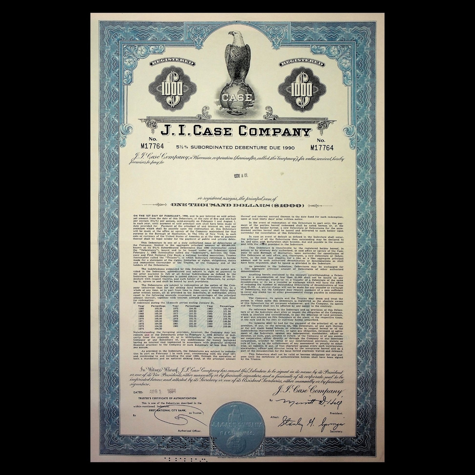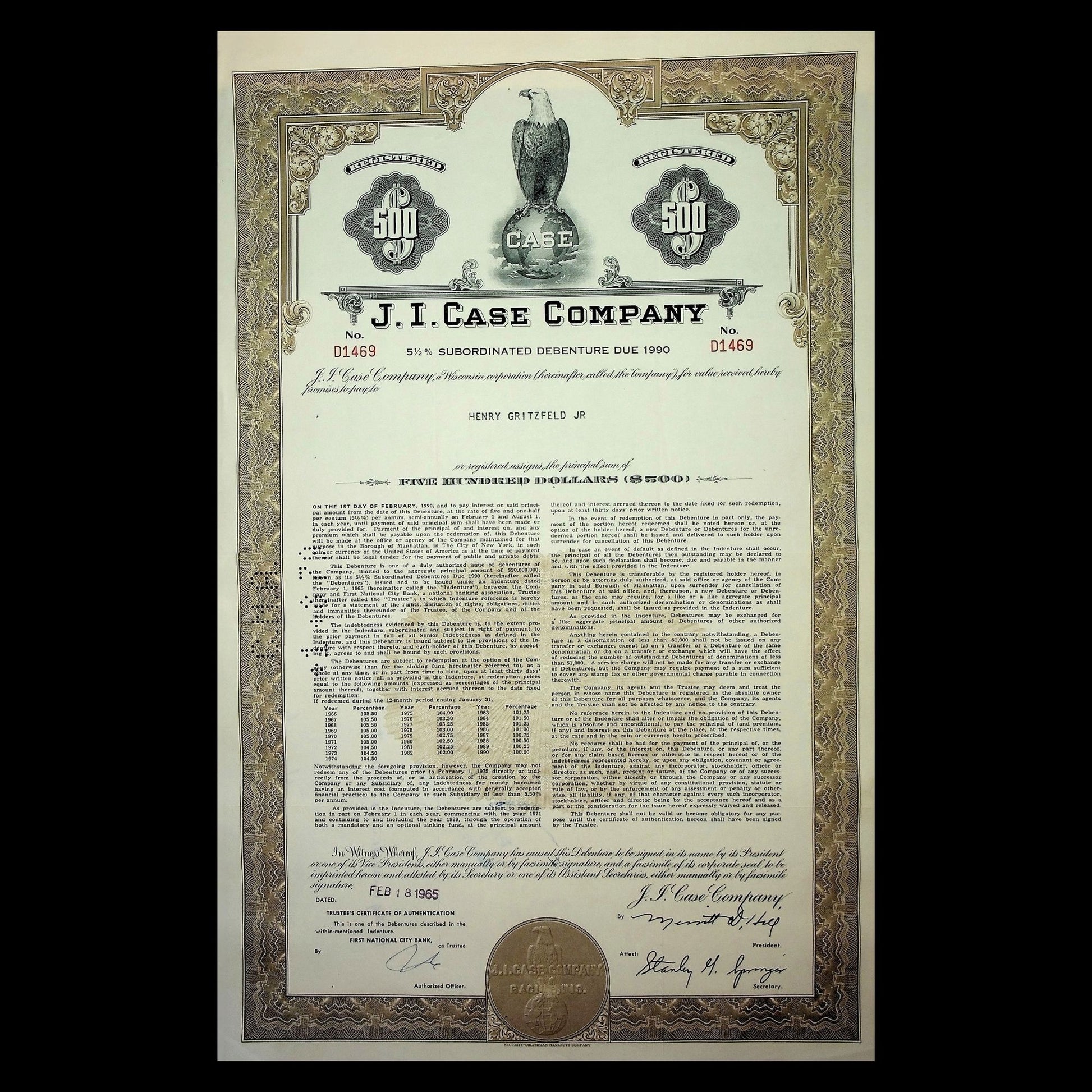 J.I. Case Company (Tractors) Bond Certificate from 1960s/70s