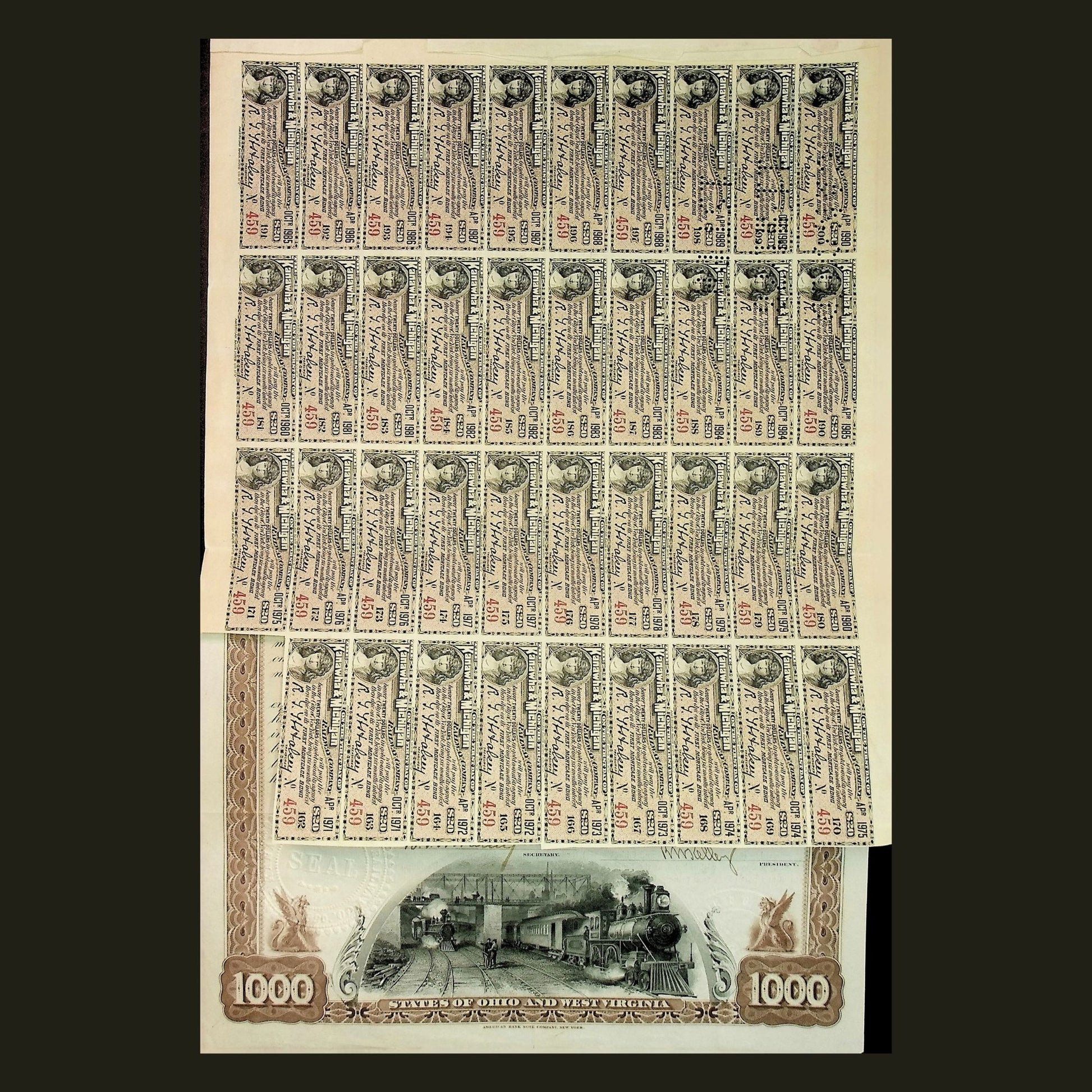 This bond is a powerful example of Gilded Age railroad finance, combining historical railroad dealmaking with beautiful engraving and design.