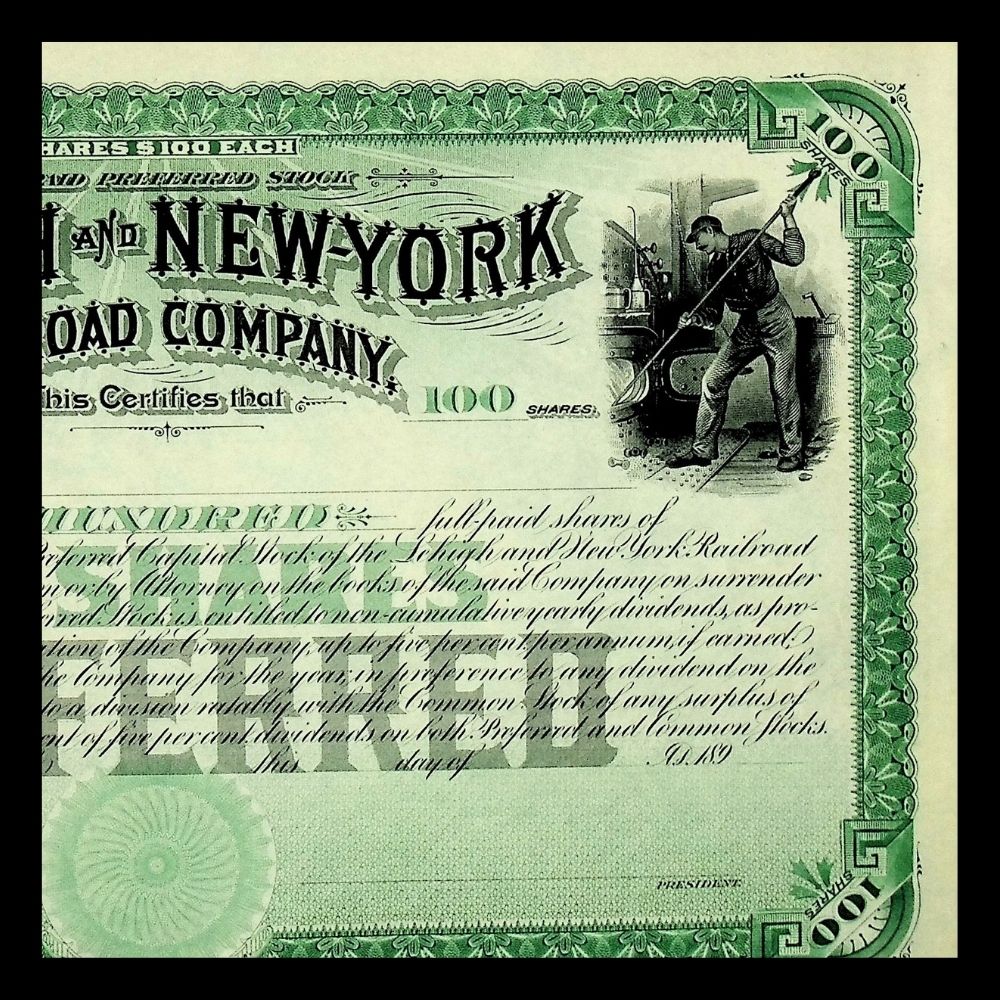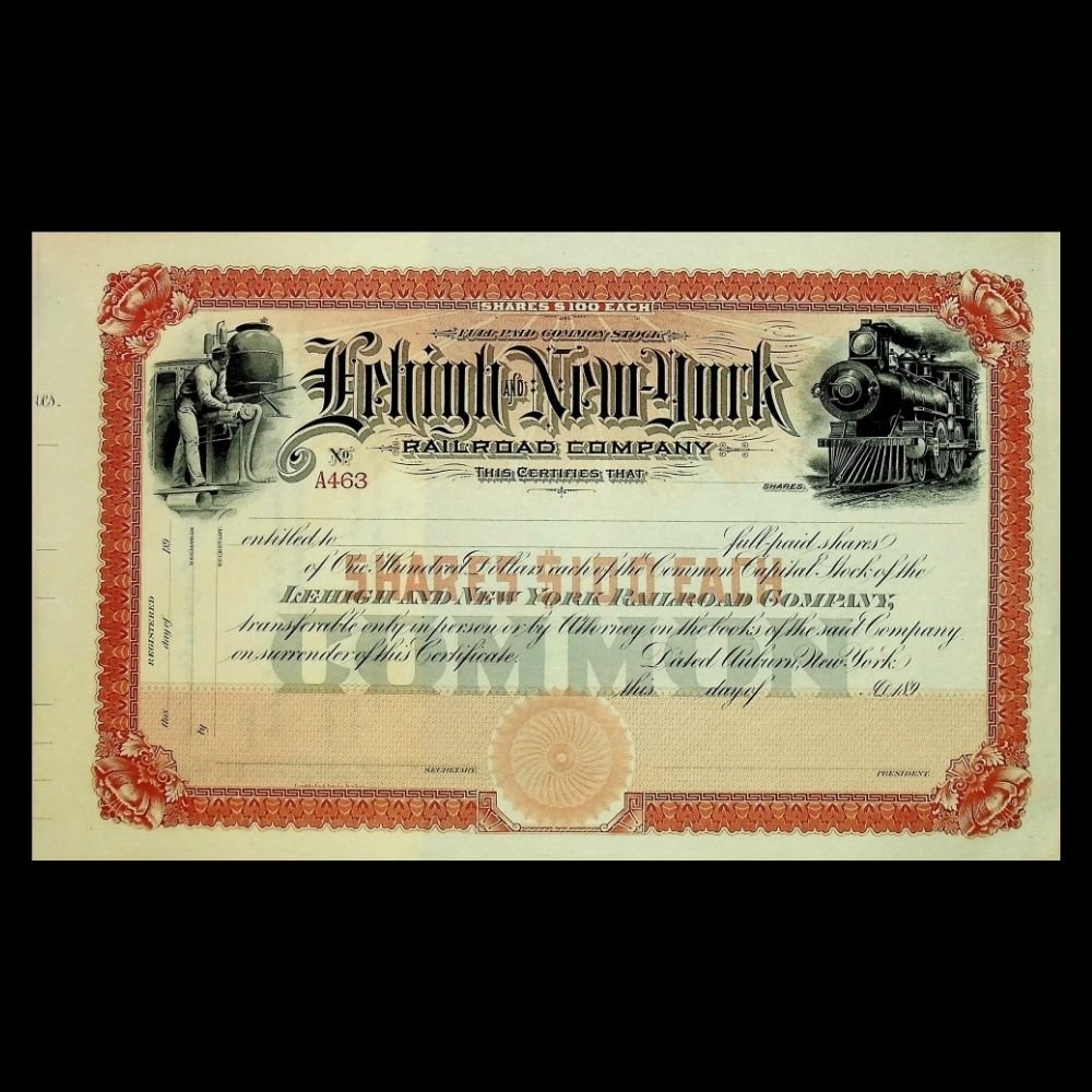 Lehigh and New York Railroad Company Unissued Stock Certificate 1890s