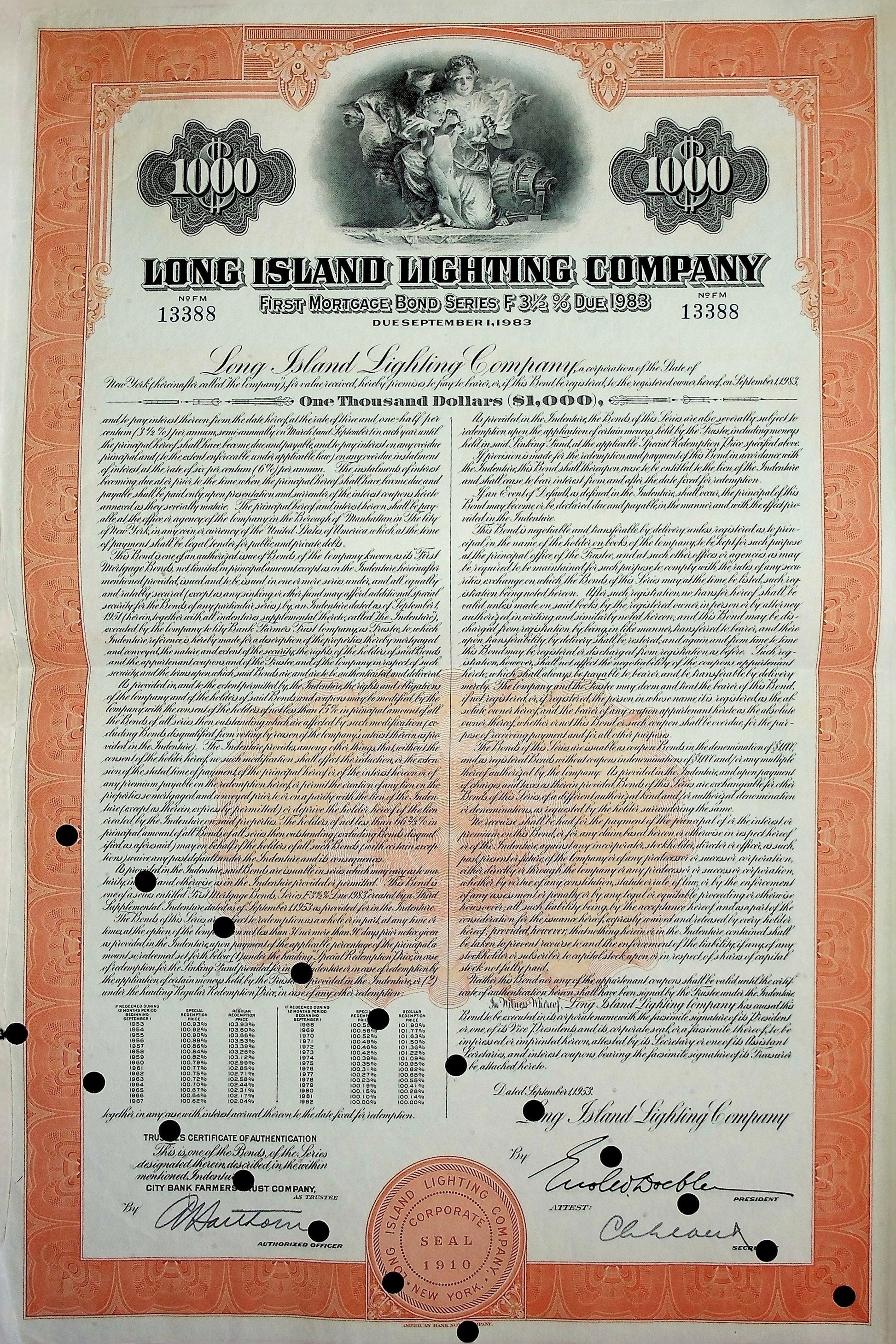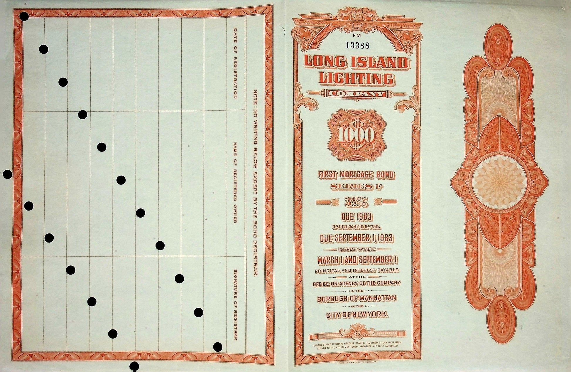 Originally established as the Long Island Lighting Company (LILCO), they issued bond certificates to fund their operations.