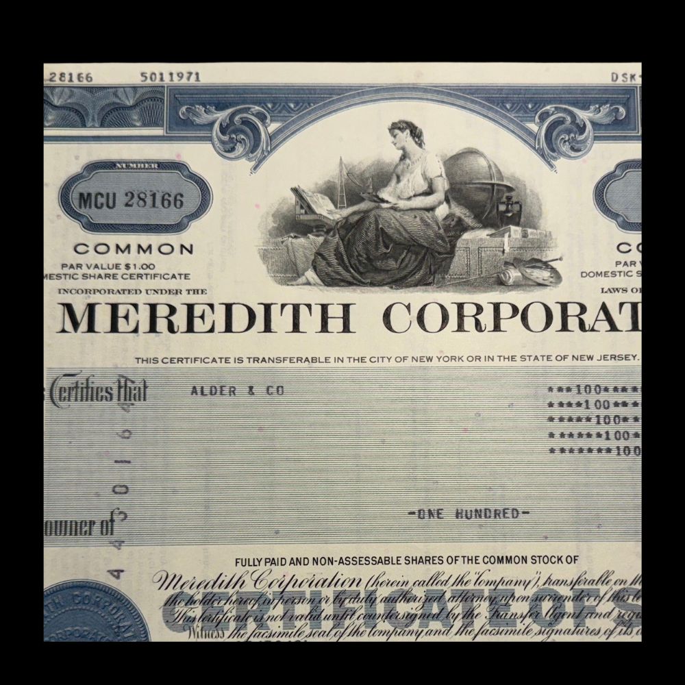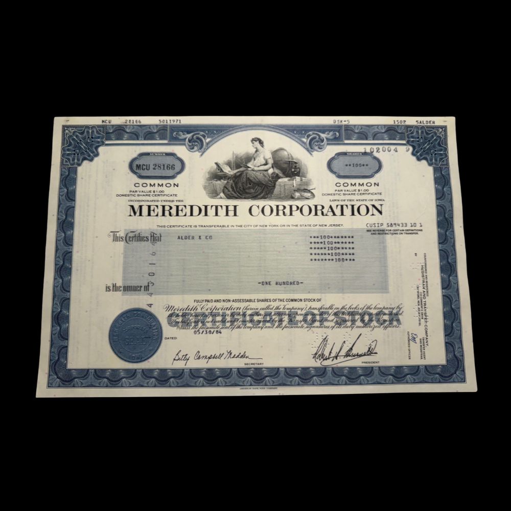 Meredith Corporation Stock Certificate from 1980 - Media Company