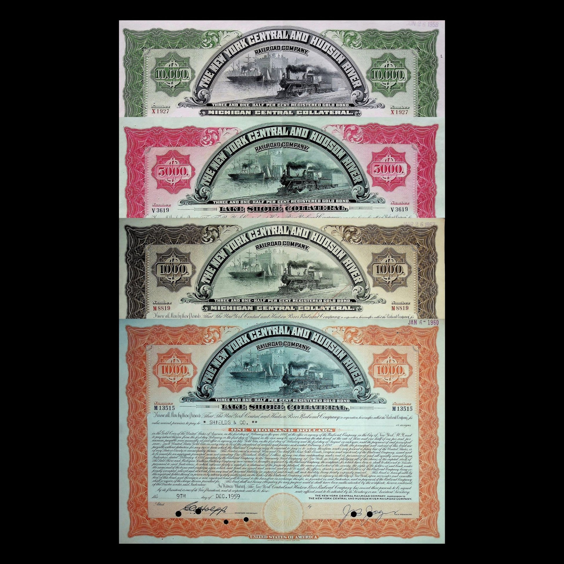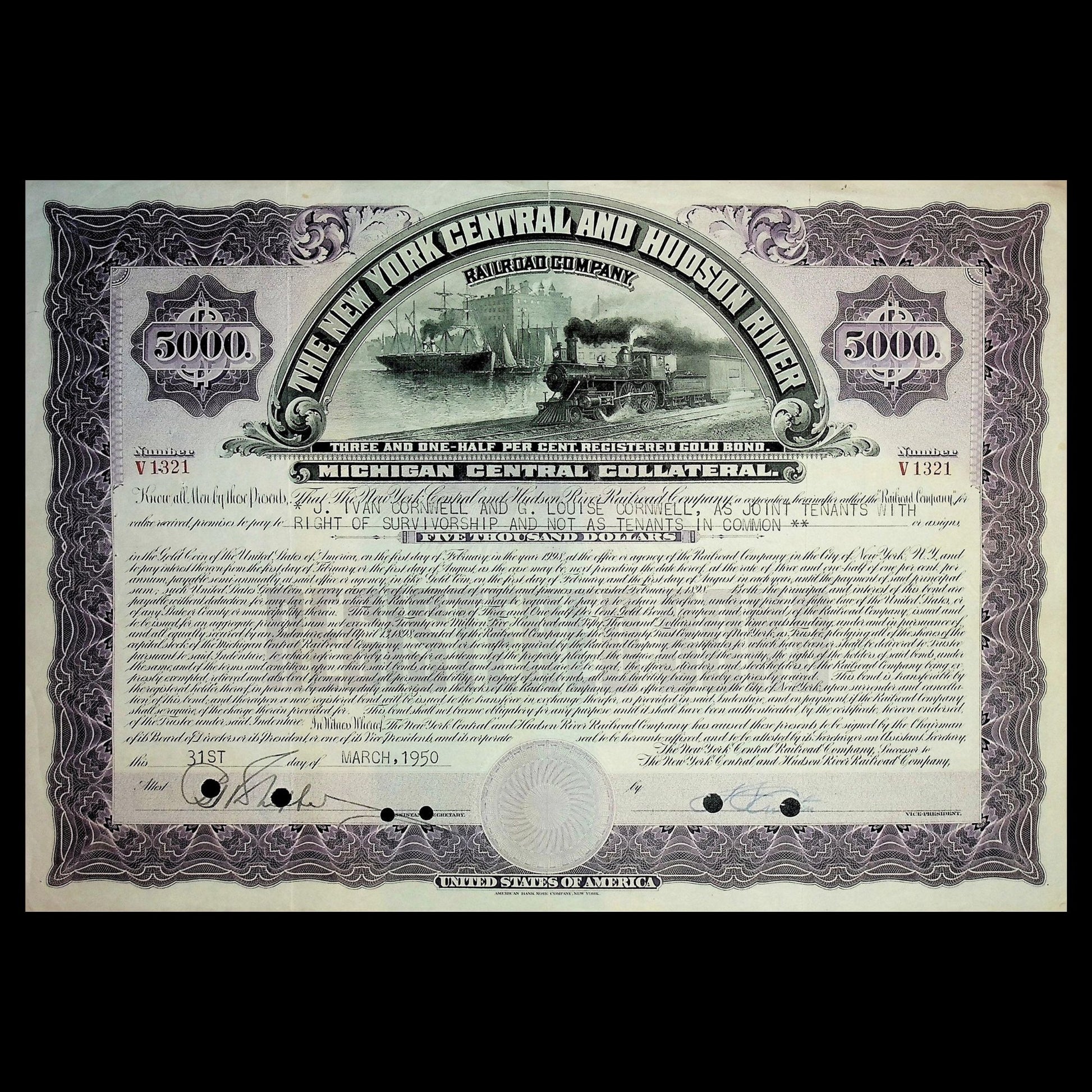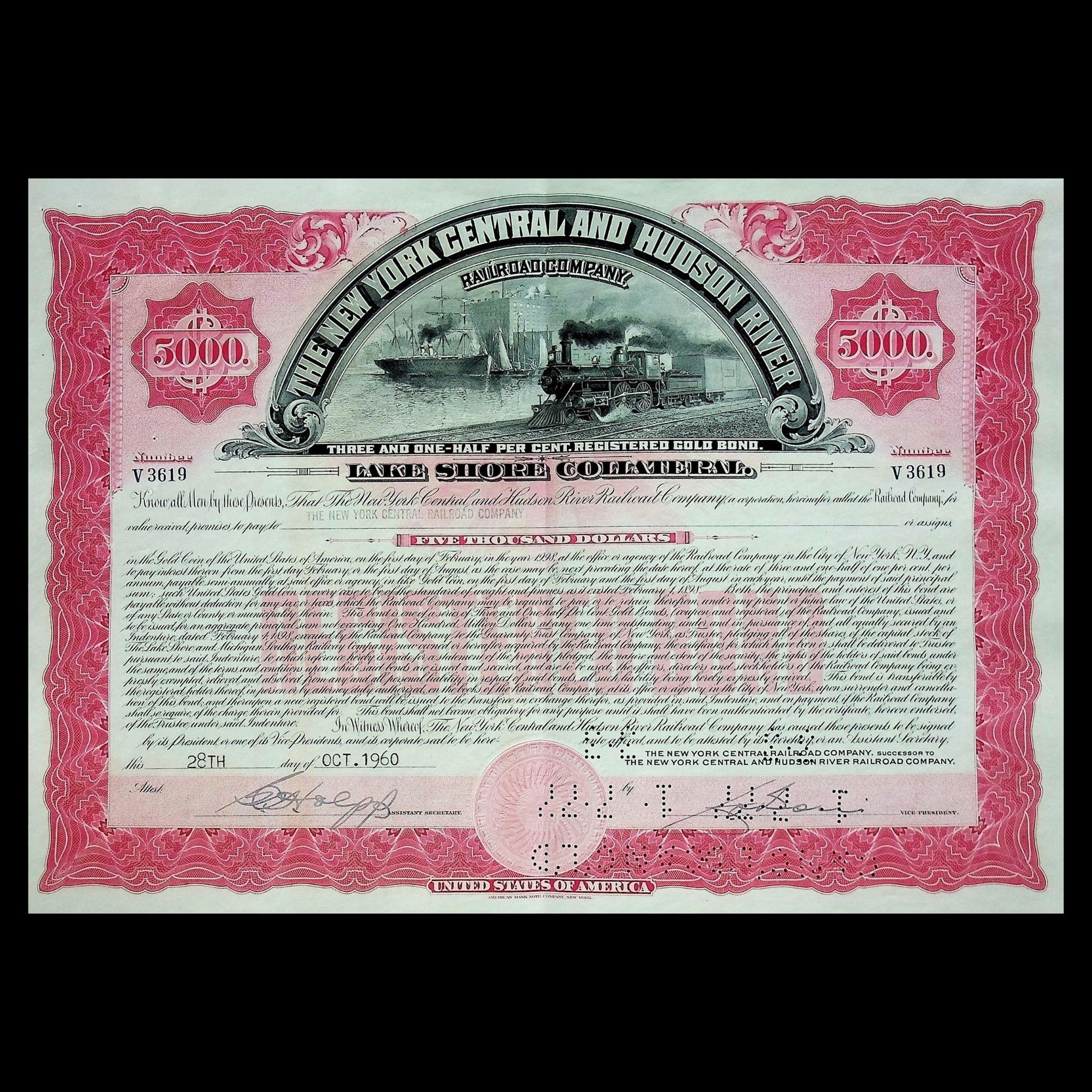 New York Central and Hudson River Railroad Company Bonds from 1950s (6 color options)