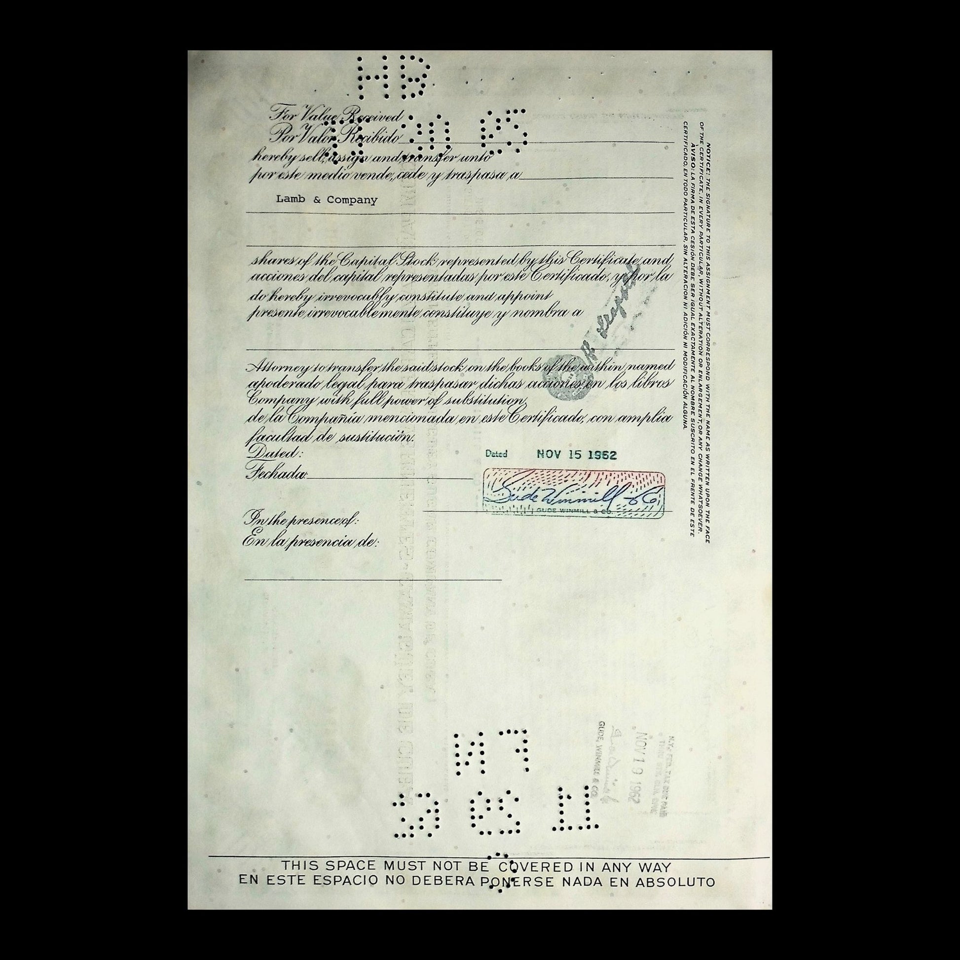 A historically important cancelled Cuban sugar stock certificate tied to Cold War economic history.