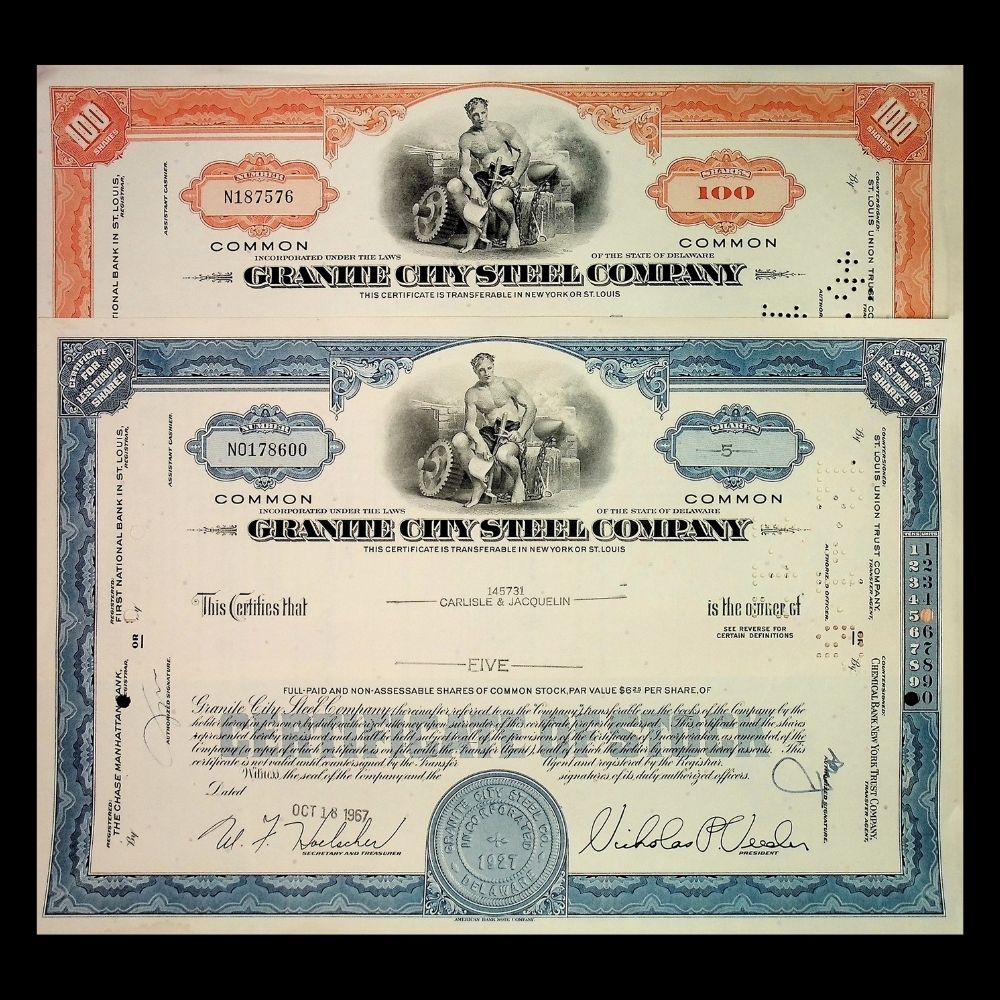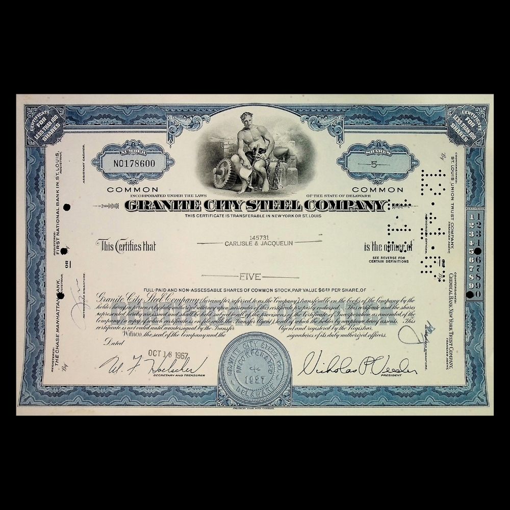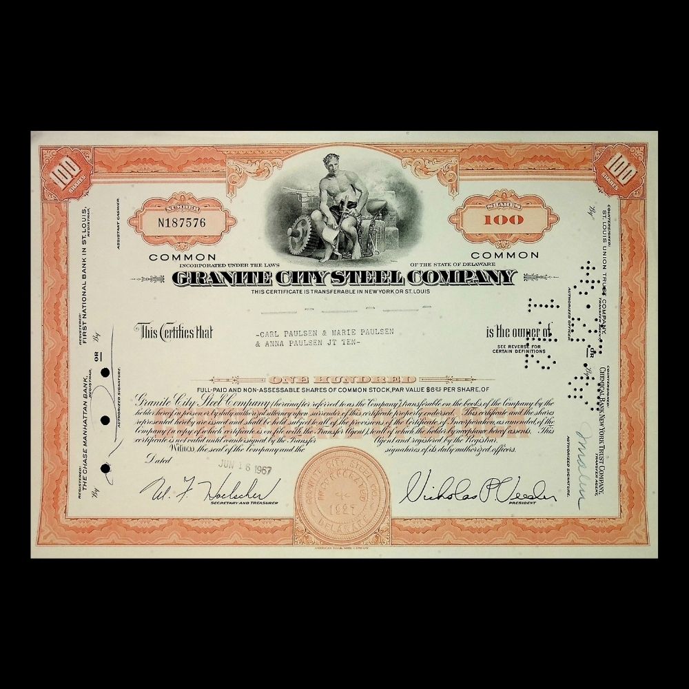 Granite City Steel (now US Steel) Company Stock Certificate from 1960s