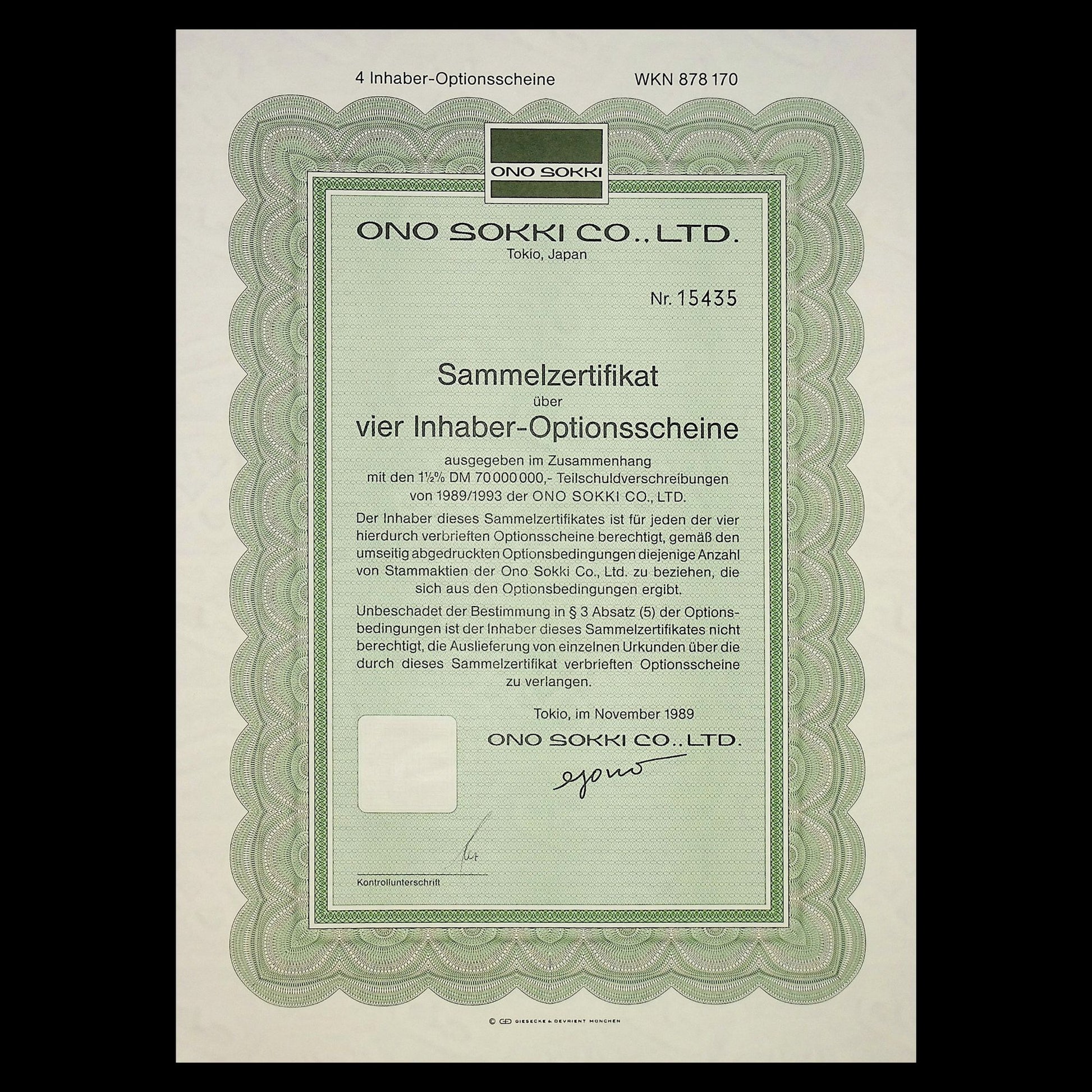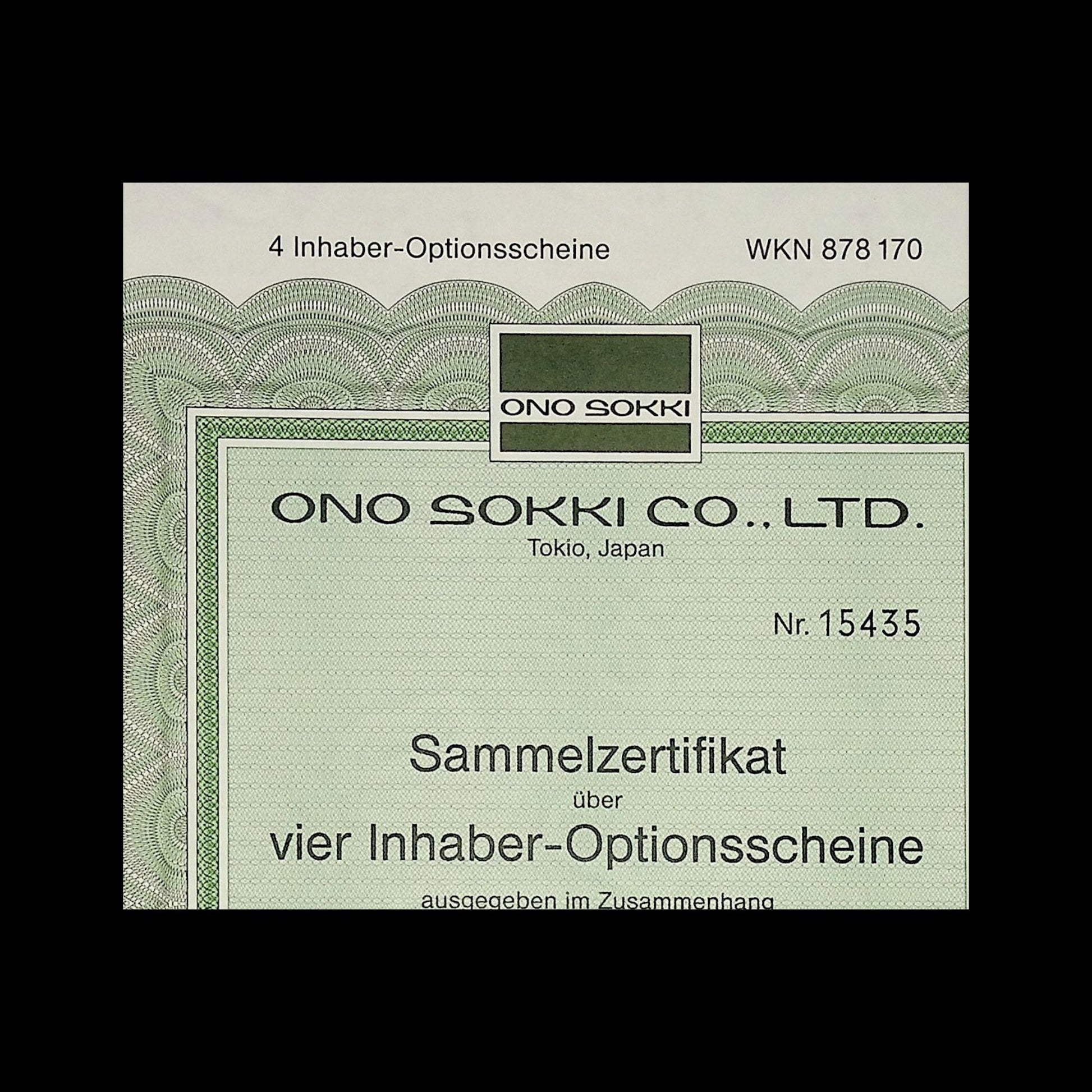 Ono Sokki Co Ltd (Tokyo) Warrant In German from 1989
