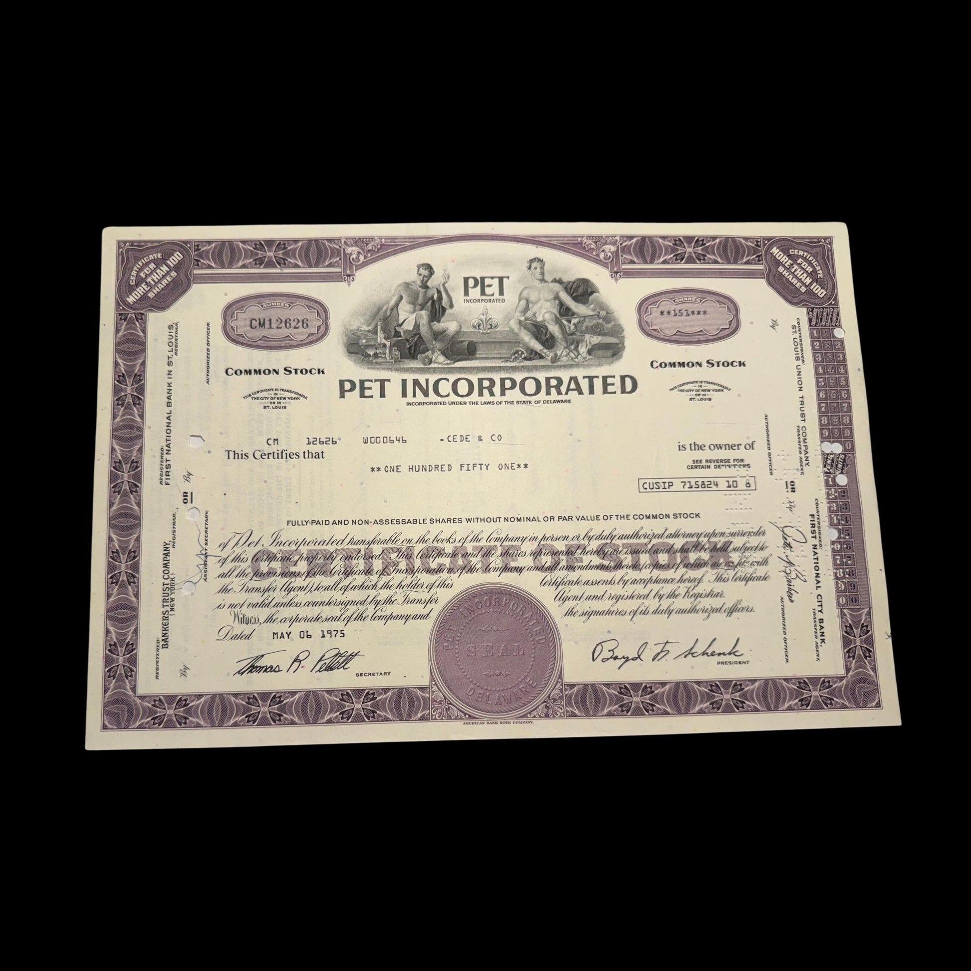 PET Incorporated (now J.M. Smucker/ Dean Foods) Stock Certificate from 1975