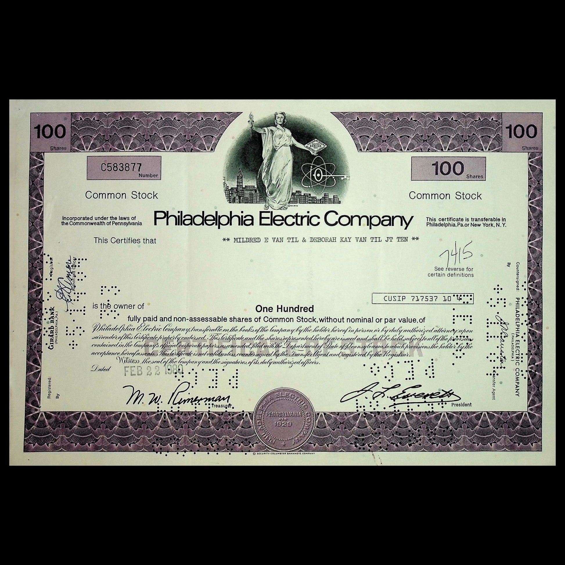 Philadelphia Electric Company (now Exelon) Stock Certificate