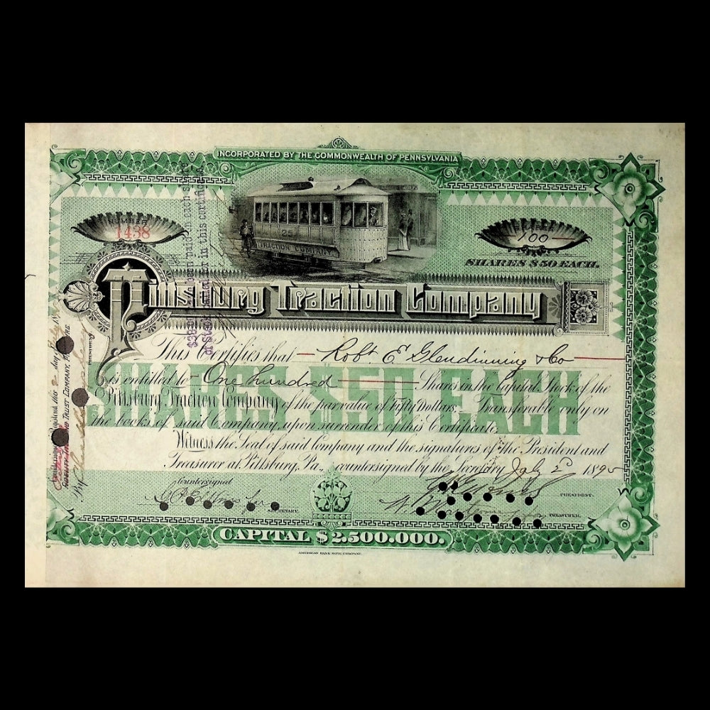 Pittsburgh Traction Company Stock Certificate from 1895