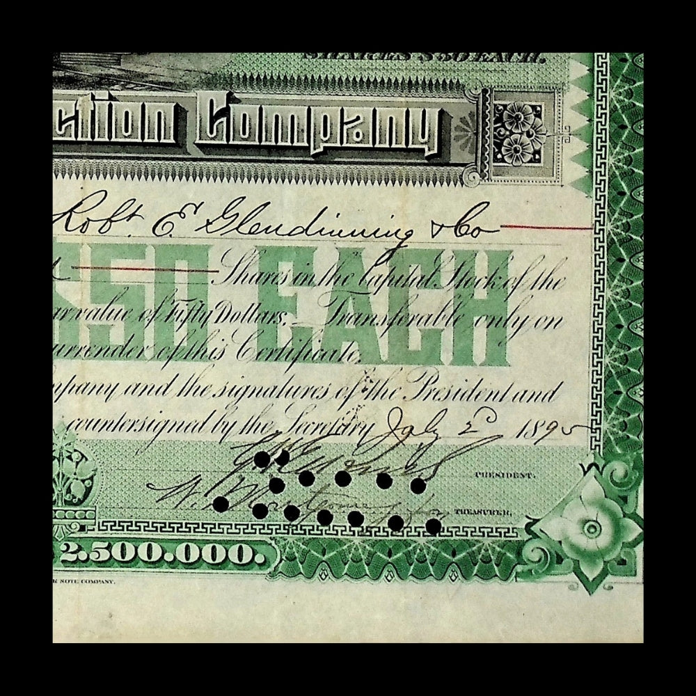 Paper quality: Stock certificates were printed on a variety of certificate paper dating back to the mid 1800s. Most of these vintage collectable certificates have signs of used & wear , cancellation holes, pencil / pen writing, stamps, staples, adhesives, slight rips, missing coupons and other features.