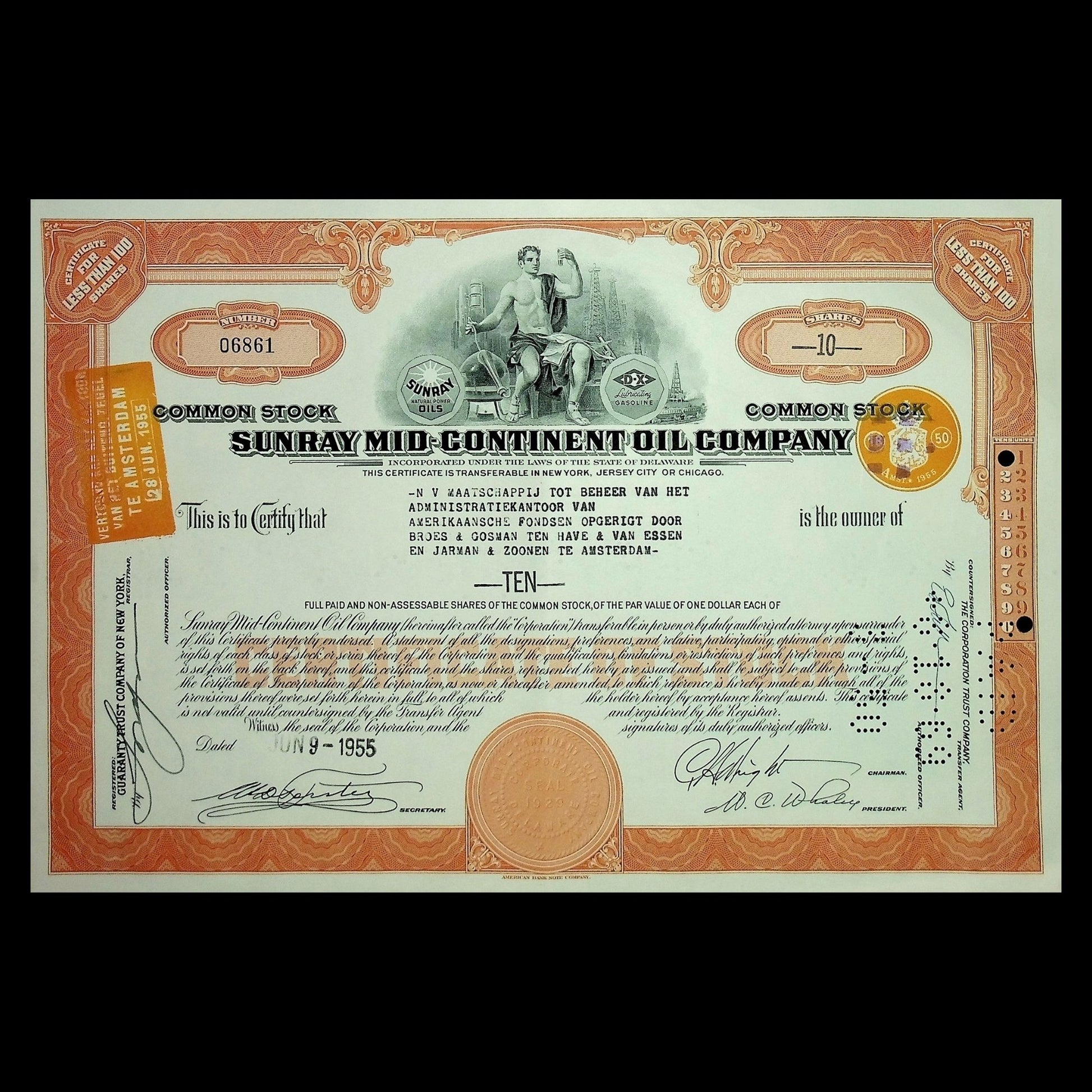 Sunray Mid-Continent Oil Company Stock Certificate from 1950s