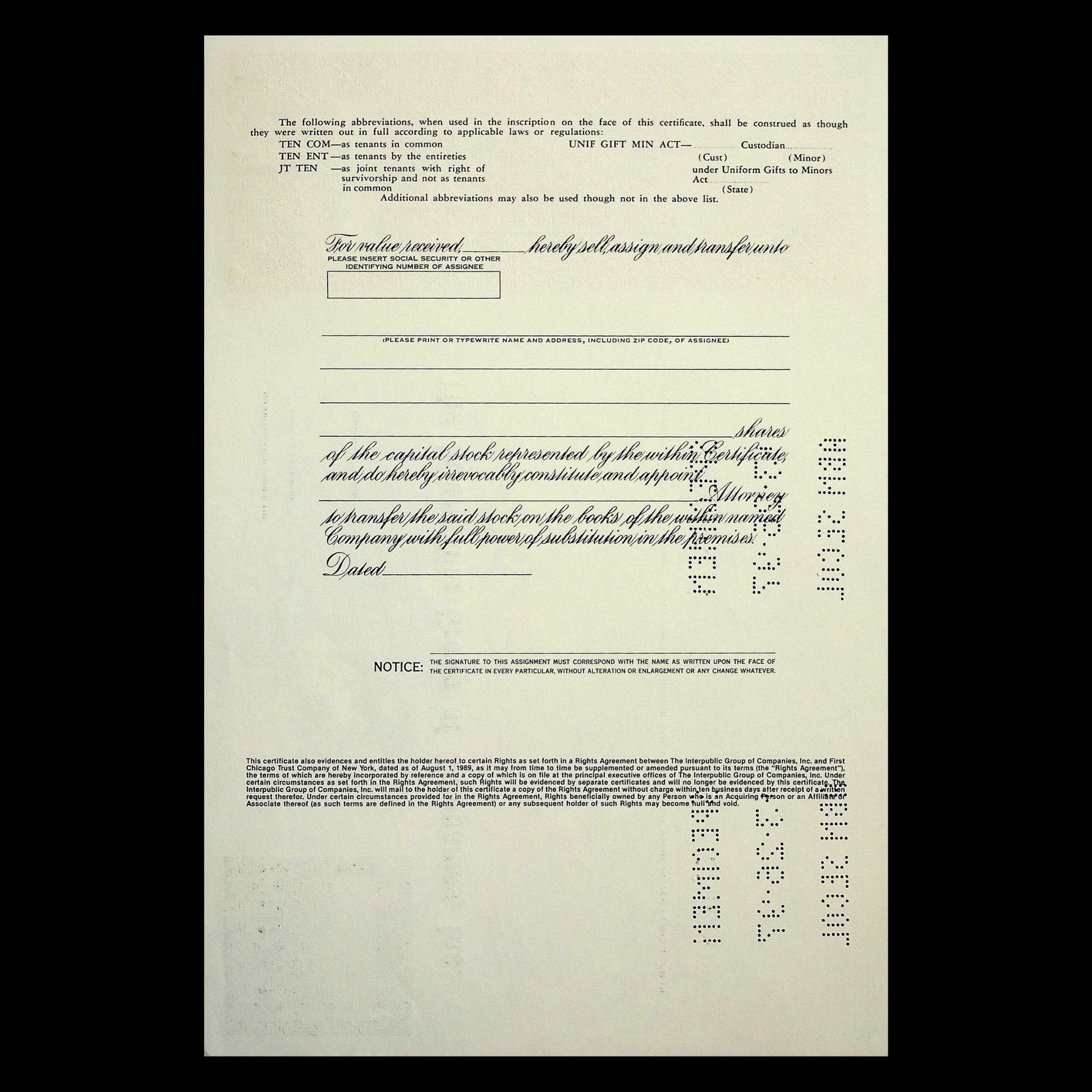 The Interpublic Group of Companies Inc (IPG Ad agency), Stock Certificate Specimen