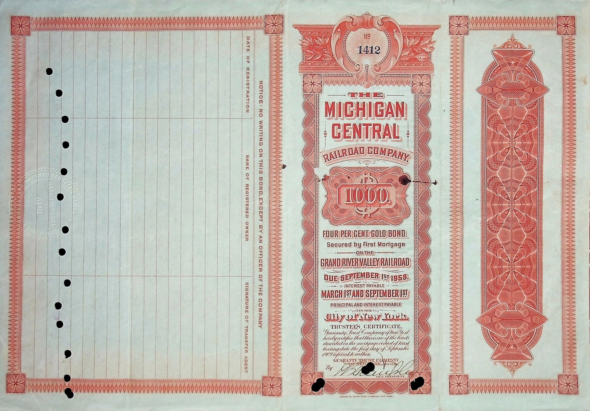 The Michigan Central Railroad Gold Bond Certificate from 1950s