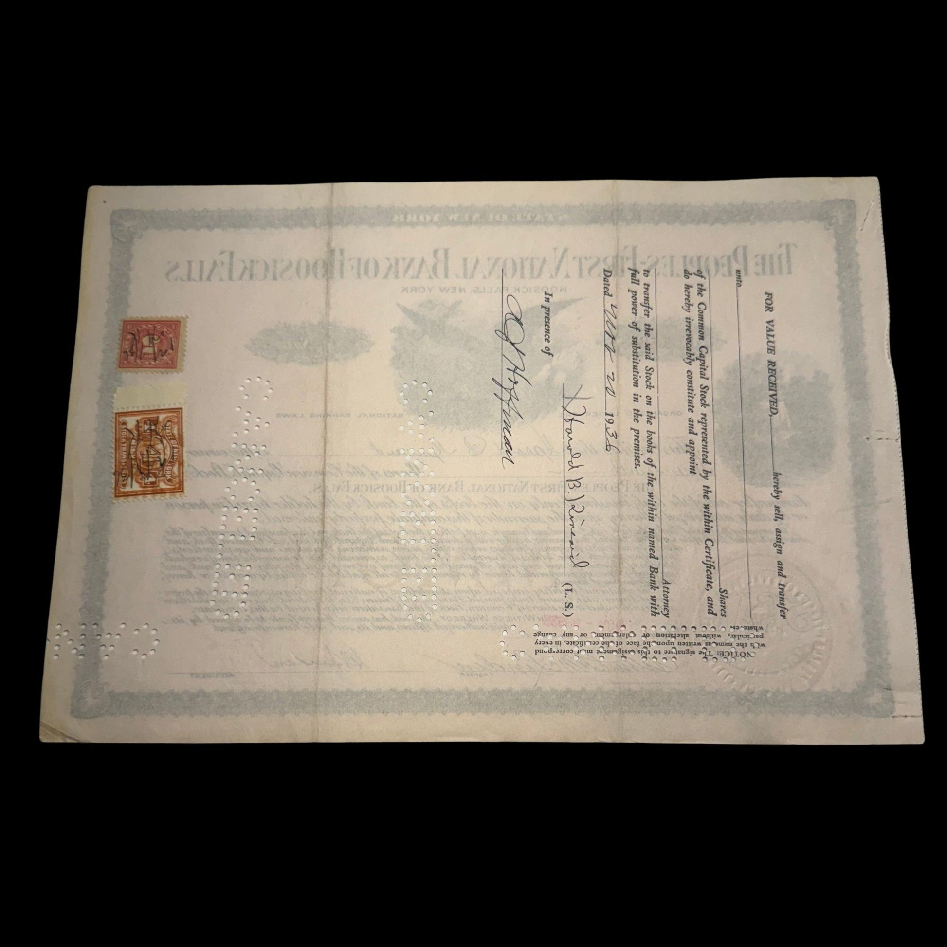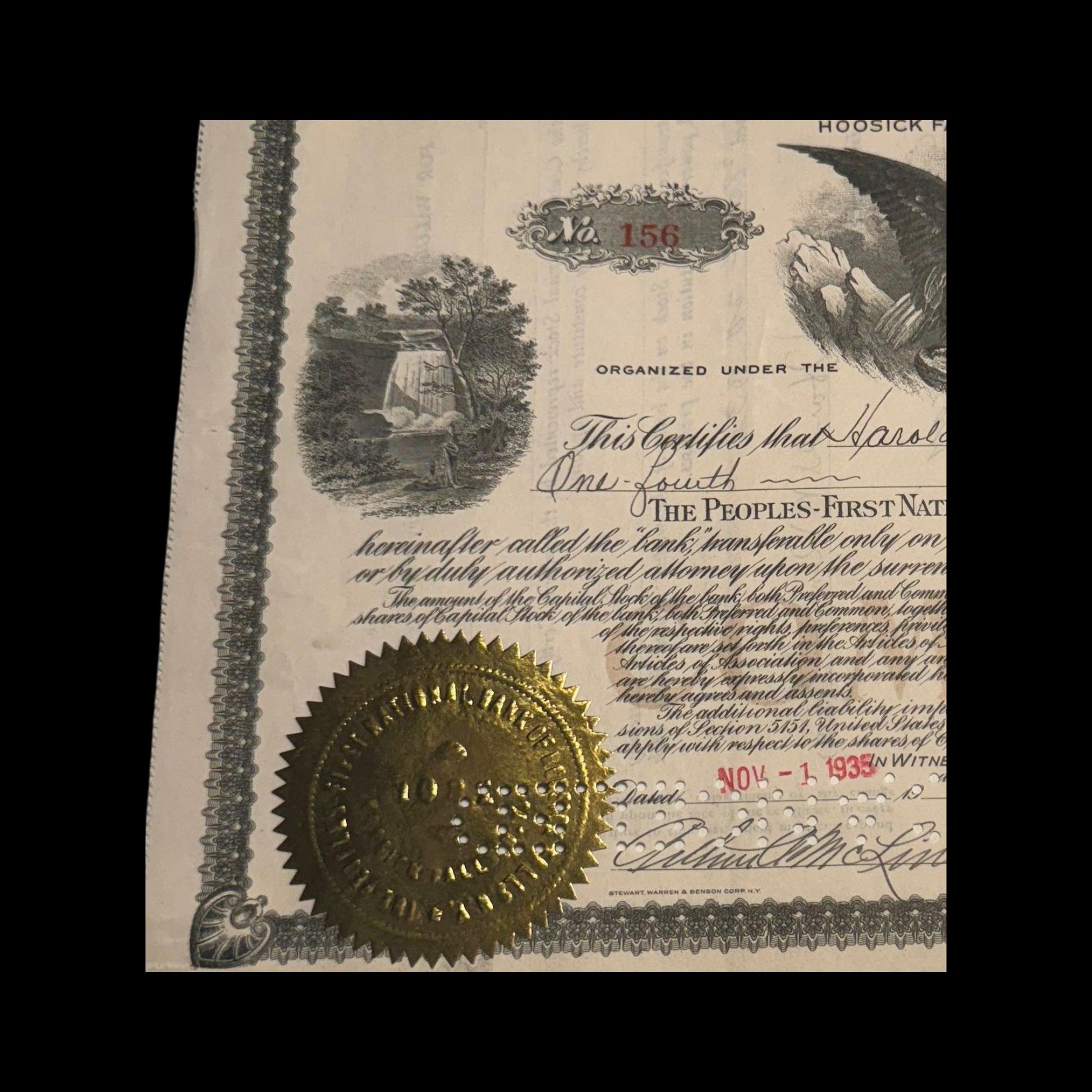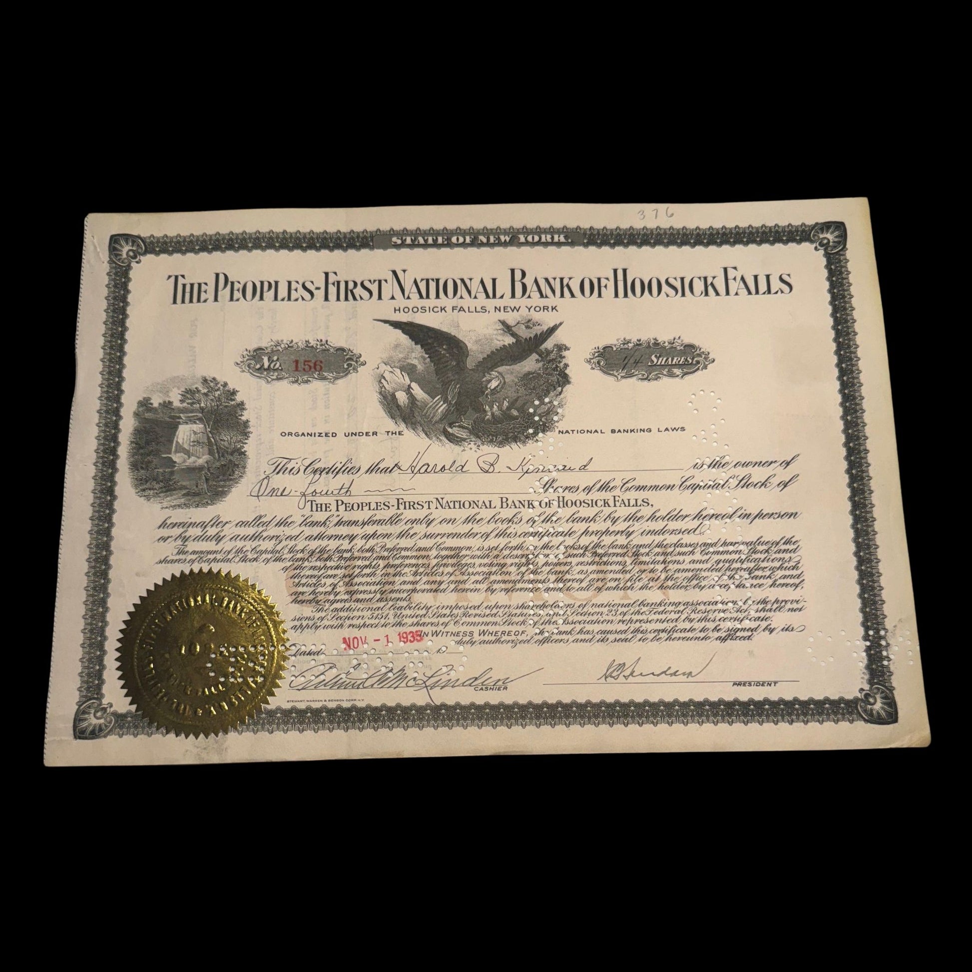 The People's First National Bank of Hoosick Falls (New York) Stock Certificate from 1953